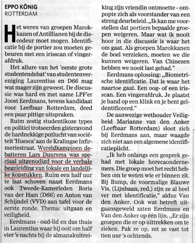 Bij de Rotterdamse studentenvereniging Laurentius leidde Debatrix het Groot Studentendebat, waar behalve lokale kopstukken ook Joost Eerdmans (LPF) en Boris van der Ham (D66) vertegenwoordig waren. (Zie artikel AD)